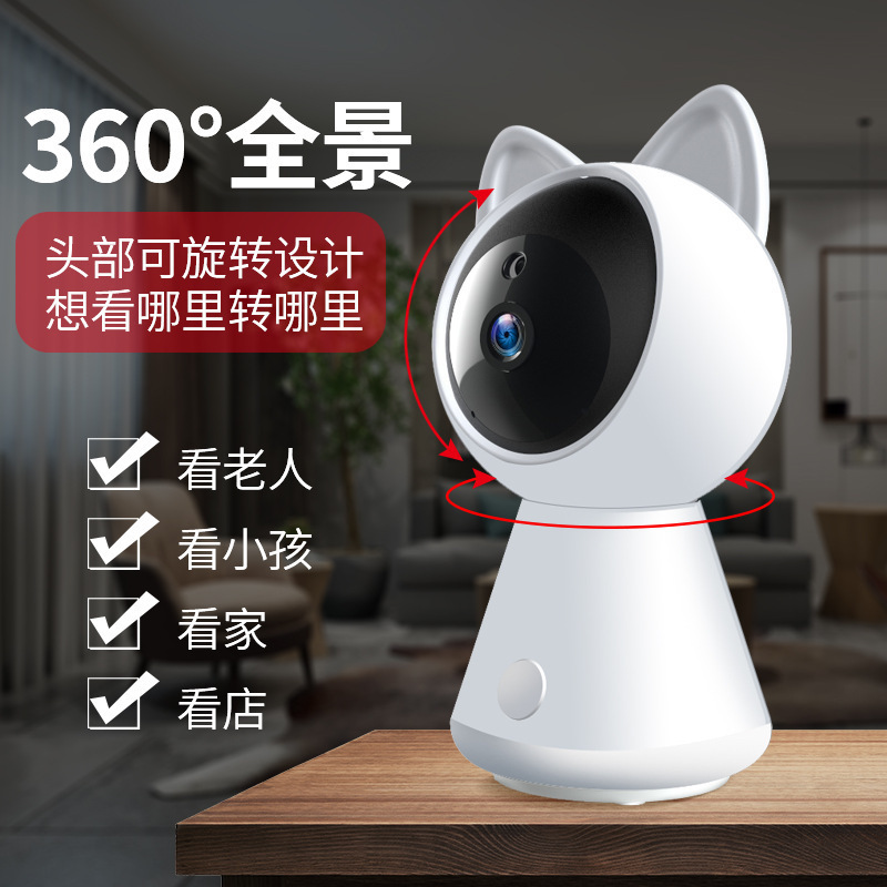 Wireless home 360 panoramic camera little white cat smart home WIFI remote mobile phone HD night vis